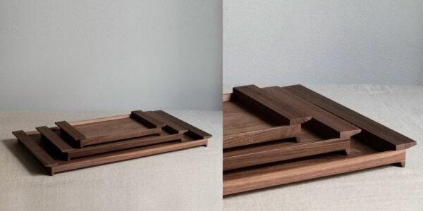 Crafted from African walnut and French oak, this tray exudes a timeless elegance. Its solid wood construction makes it both durable and sturdy. The dark brown tones of the African walnut are complemented by the warm, honey hues of the French oak, creating a stunning contrast that is both appealing and visually striking. Perfect for serving guests or for use as a decorative piece, this classic tray is sure to add sophistication and charm to any room.