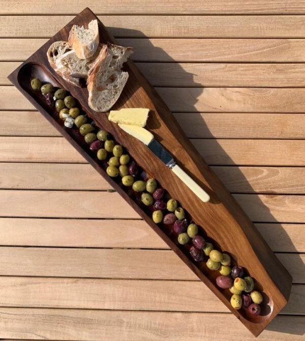 Elevate your hosting game with our stunning rustic serving board, handcrafted from raw, natural solid wood. A luxurious addition to your entertaining arsenal, this beautiful board is perfect for displaying and serving your favorite cheeses, charcuterie, crackers, fruits, and more. Its unique, artistic design is sure to impress your guests, and its high-quality craftsmanship ensures that it will last for years to come. Whether you’re hosting a dinner party or enjoying a casual night in, this serving board is the perfect way to add a touch of elegance and sophistication to any occasion.